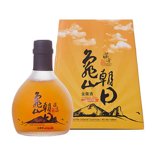 【亀山朝日金柑酒】雪山山脈の湧き水と厳選された酵母を使用し、宜蘭の金柑を用いて醸造しています。厳選された龍眼蜂蜜を合わせることで酸味と甘味のバランスを整えました。また豊かな柑橘の香りもしっかり感じることができます。