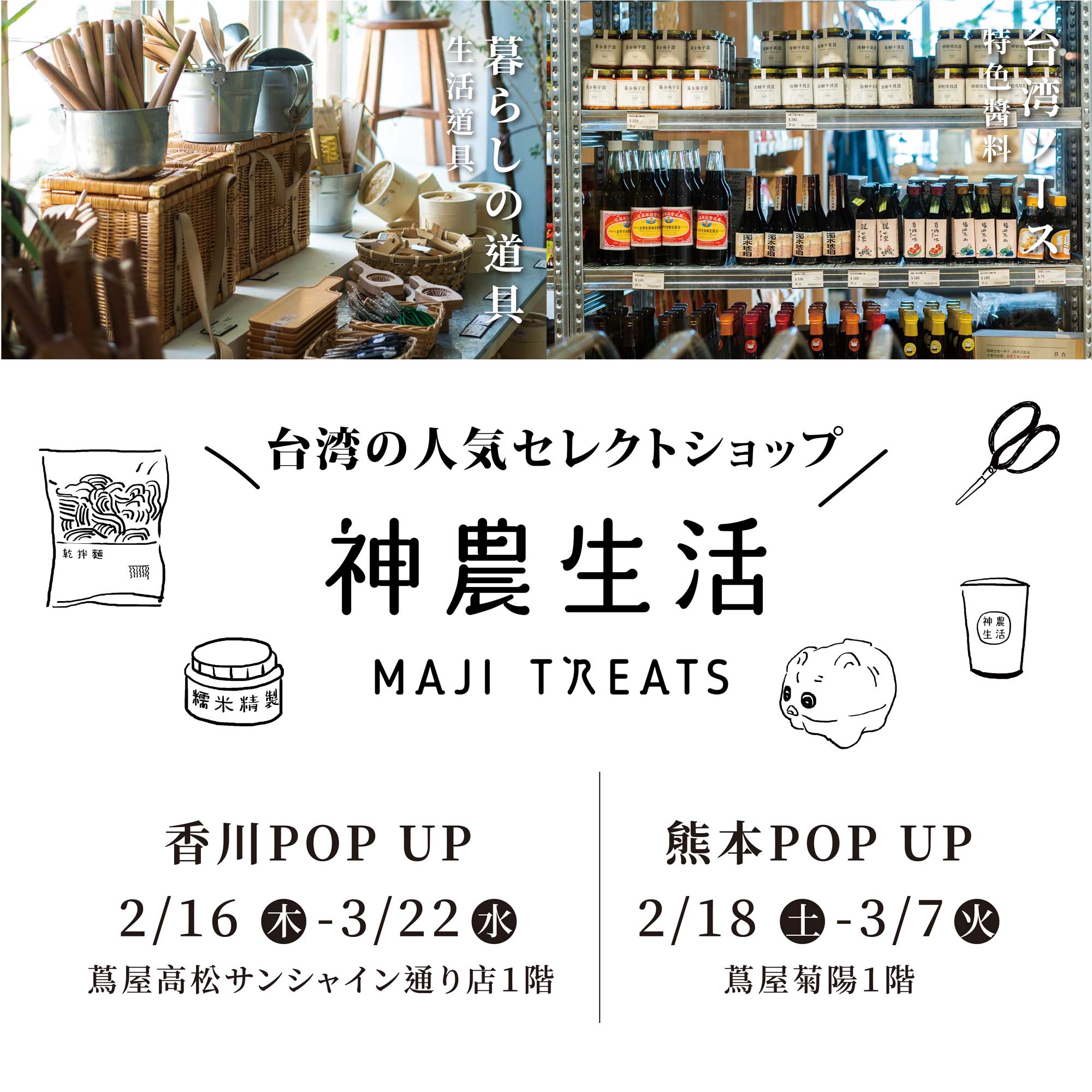 〈香川〉蔦屋高松サンシャイン通り店POPUPショップ(TSUTAYAで実施される「台湾フェア」に神農生活が出店)
