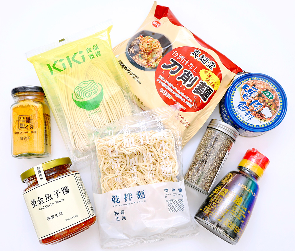 【詰合せ内容】担々麺、KiKiネギオイルまぜそば、刀削麺、魚卵醤、ウコンパウダー、ルーロー飯の素、卓上醤油、黒胡椒