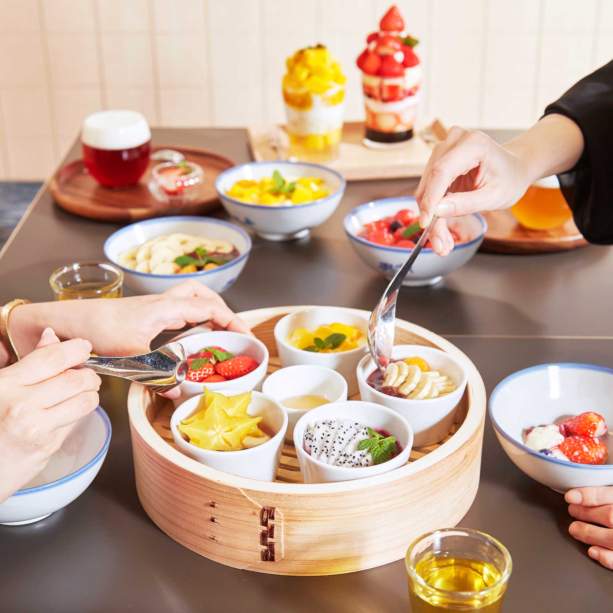 カラフルなフルーツ豆花からフルーツゼリーまで多種多様なフルーツデザートを取り揃え、お客さまのご来店お待ちしております。
