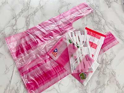 台湾のお店や屋台でおなじみのしましま袋(紅白塑膠袋)を使ってリメイクします。