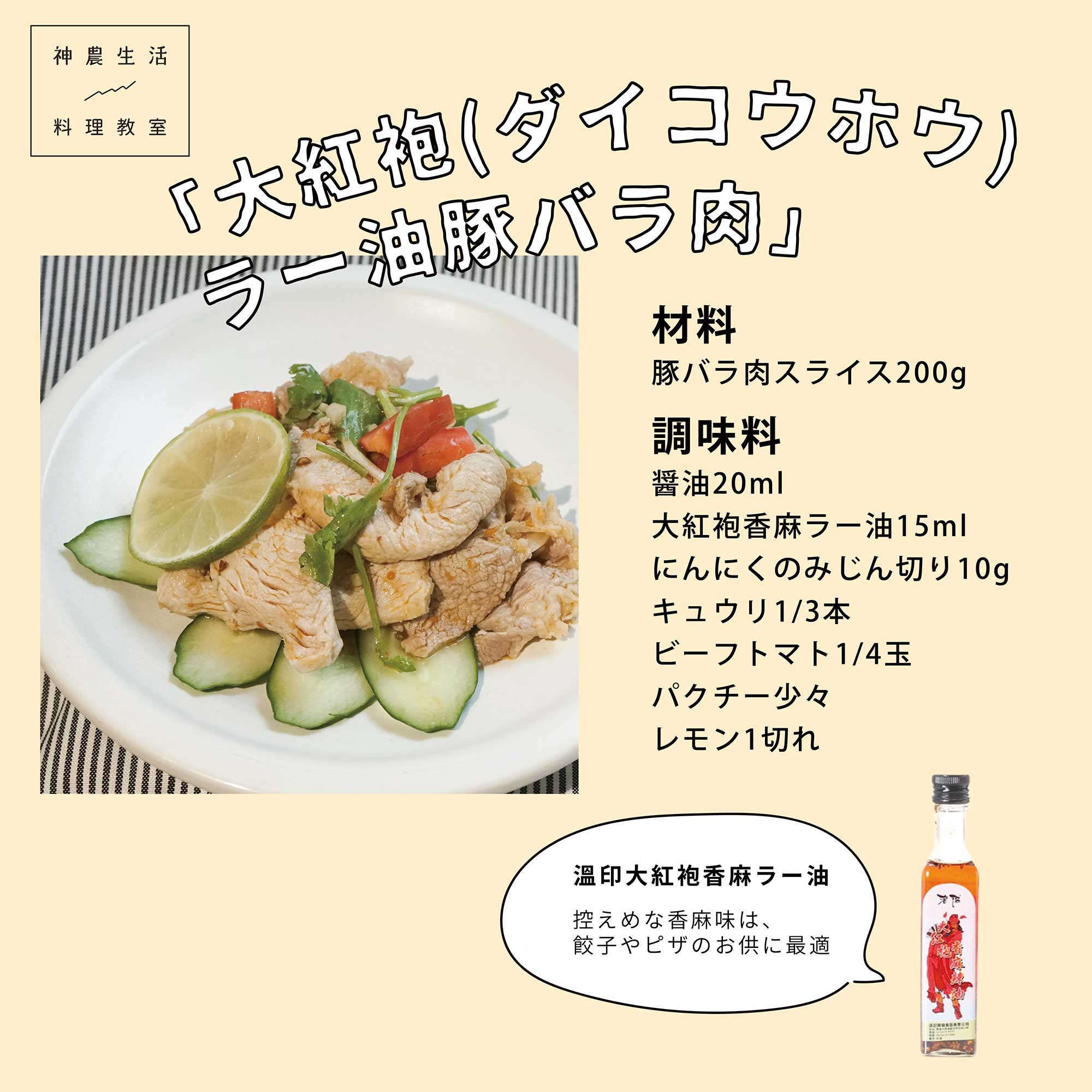 大紅袍(ダイコウホウ)ラー油と豚バラ肉の和え物 2022/11/15