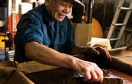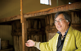 「私らの仕事は、怠けずに手間をかけ、菌の働きを助けること。あとは、注意深く見守るだけ。」と語るのは、3代目となる片上裕之さん。原料となる大豆は、ほぼ奈良県産。通常よりも多く使用するのが特徴で、造り手の情熱も加わって、濃い味わいに仕上がる。