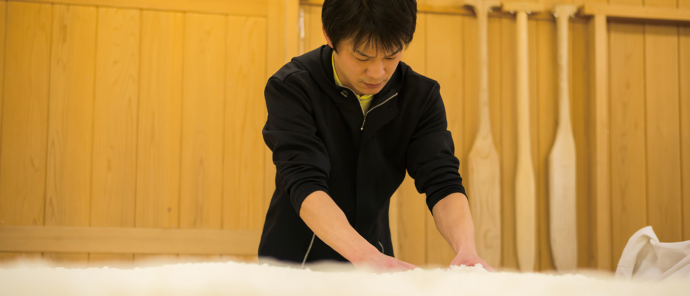 蔵の看板「豊祝」や「無上盃」などロングセラーの銘酒を醸すも「酒造りにゴールなし」と語るのは5代目蔵元の豊澤孝彦さん。「大和路ショップ」の売場にも、さらに酒質を高めた“新「豊祝」”などを出していく。