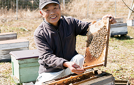 養蜂家の原さんは、退職後に養蜂を始めて10年。「まだまだひよっこ」と笑うが、毎日、丹精にハチの世話をしている。その姿を見ているからこそ、「このおいしさを地元の方に知ってもらい、日々の生活に取り入れてほしい」と的場さんは心を弾ませている。