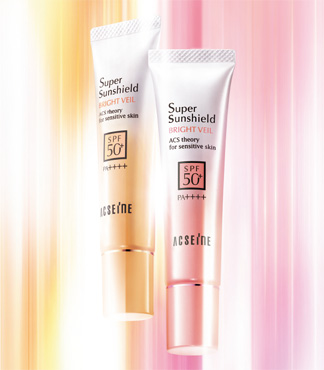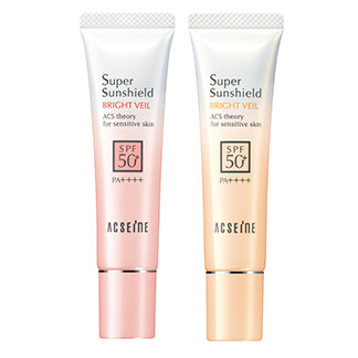 〈アクセーヌ〉スーパーサンシールド ブライトヴェール SPF50+/PA++++、全2色、22g 4,400円