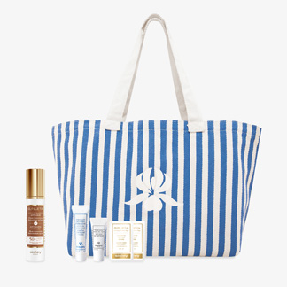 未来の肌をより美しく。強い日差しから肌を守り、魅せる。紫外線による外的ダメージを防御しながら、ハリ・輝きのあるしなやかな肌に整えるエイジング サンケア*「サンレイヤ AA サンケア SPF50+」現品と、全身をすみずみまでケアできるスクラブ入りボディウォッシュなどのミニ サイズ3種をオリジナル トートバッグにセット。強くなる日差しに負けない、初夏に向けたつややかな美肌づくりができるサンケア キットです。