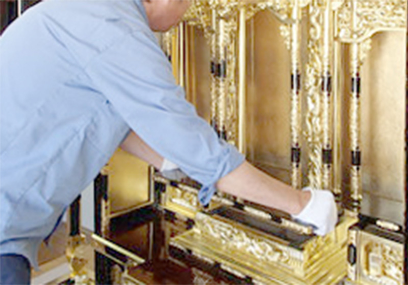 お仏壇から仏具まで、当社専業スタッフが特殊技術にて、細部に至るまで心のこもったお掃除をさせていただきます。