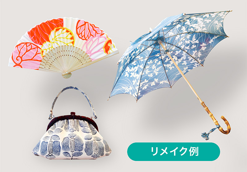 お手持ちの振袖をお嬢さまの体型に合わせて仕立て直したり、きものの扇子や傘へのリメイクも承ります。