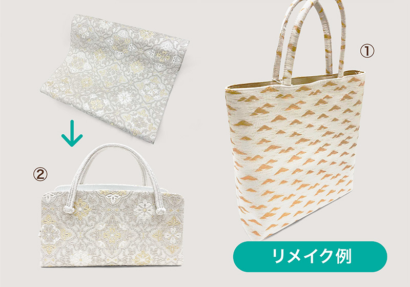 お持ちのきもの・帯の生地をぞうりや和装バッグの柄にリメイク。価格はモデルになる既製品とほぼ同価格です。