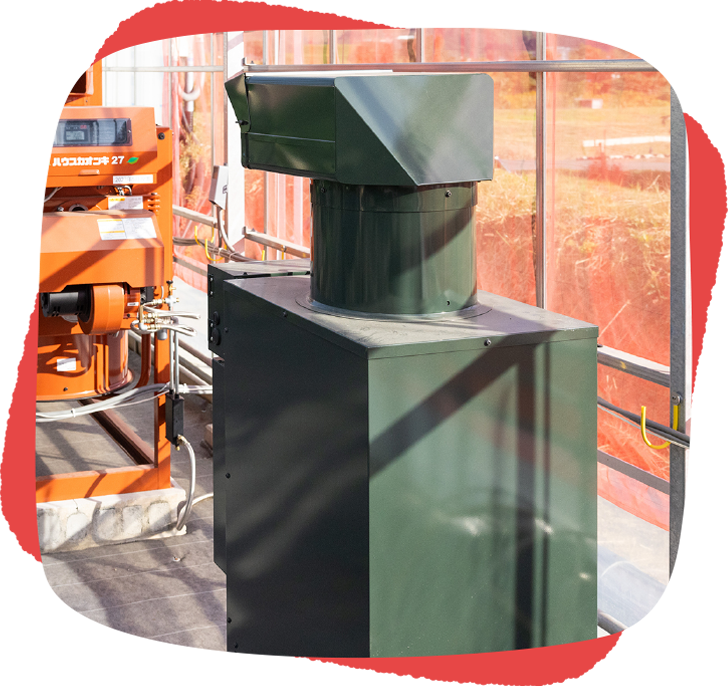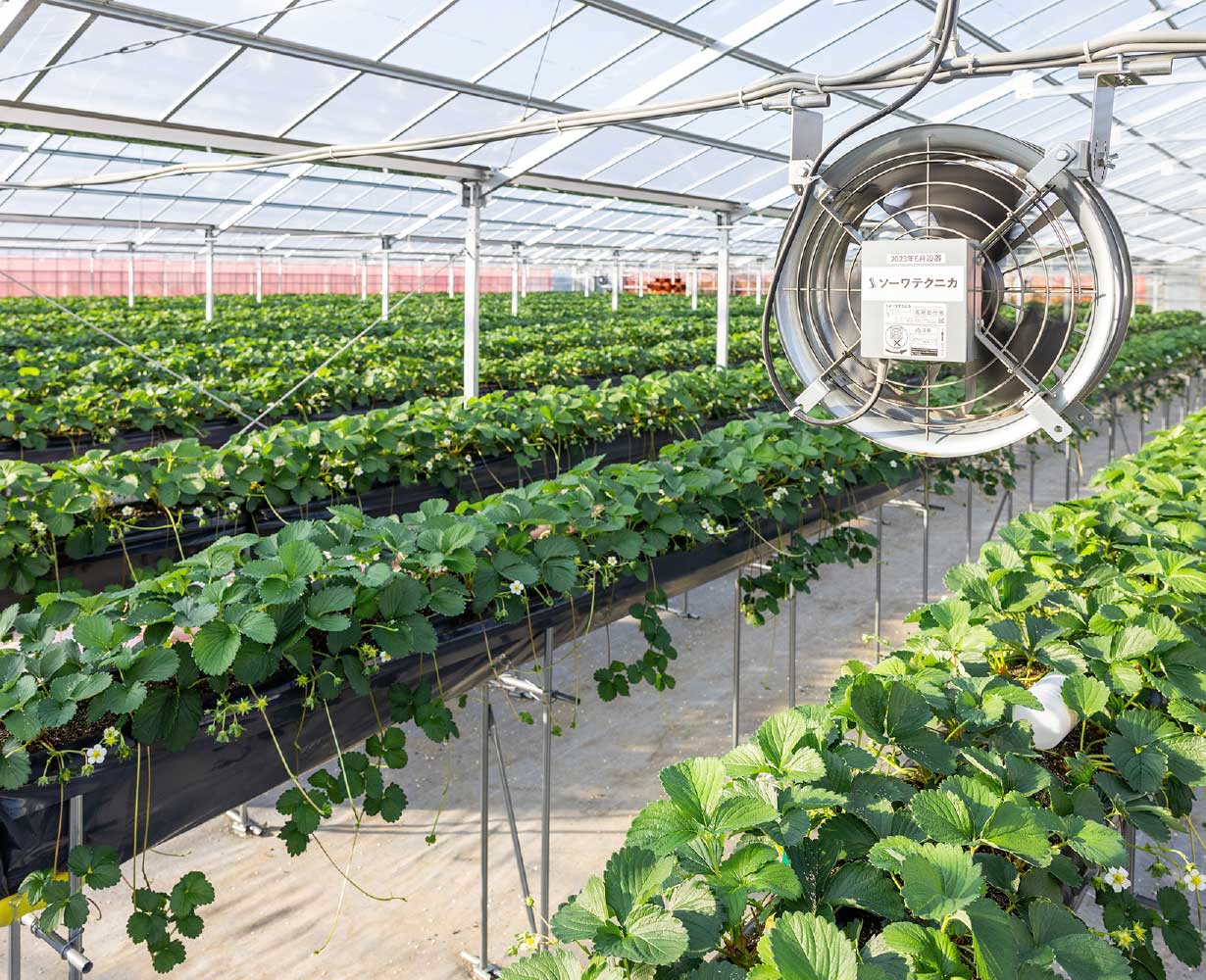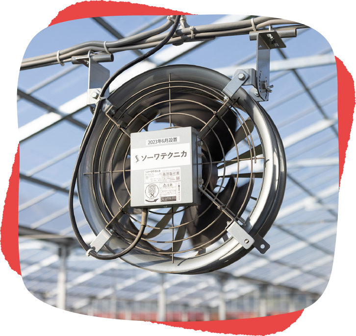 ハウス内の温度のムラを削減し、生育に重要な風を自動で供給しています。