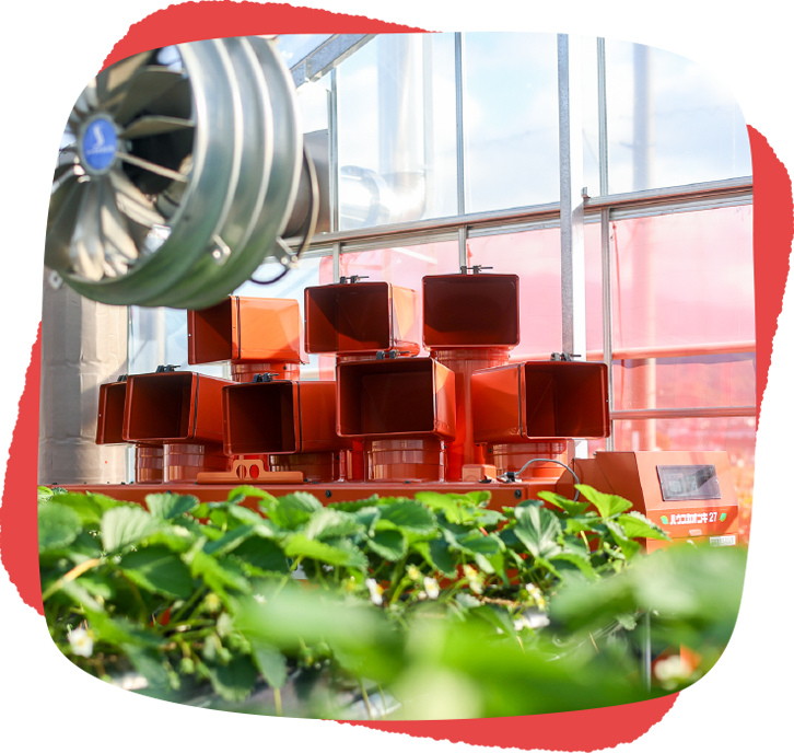いちごの成長の促進、品質向上を目的に、冬場に不足しがちな、光合成に必要な炭酸ガスを供給します。
