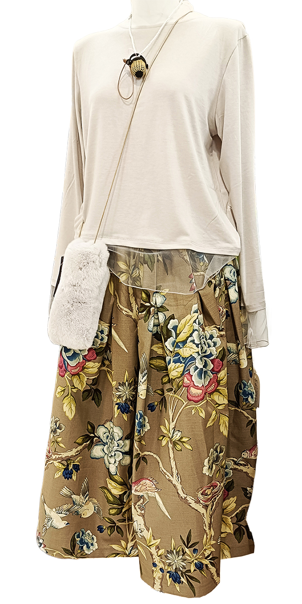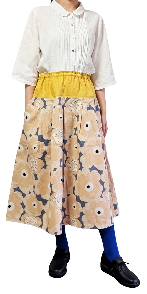 厳選した作家好みの生地で、フレアーお腹痩せ見えスカートと雑貨を制作。
