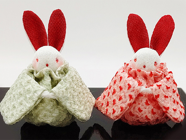 ミニ福々うさぎ(台付き)正絹縮緬