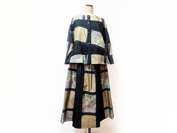 着物リメイク(大島紬)ツーピース 絹100%