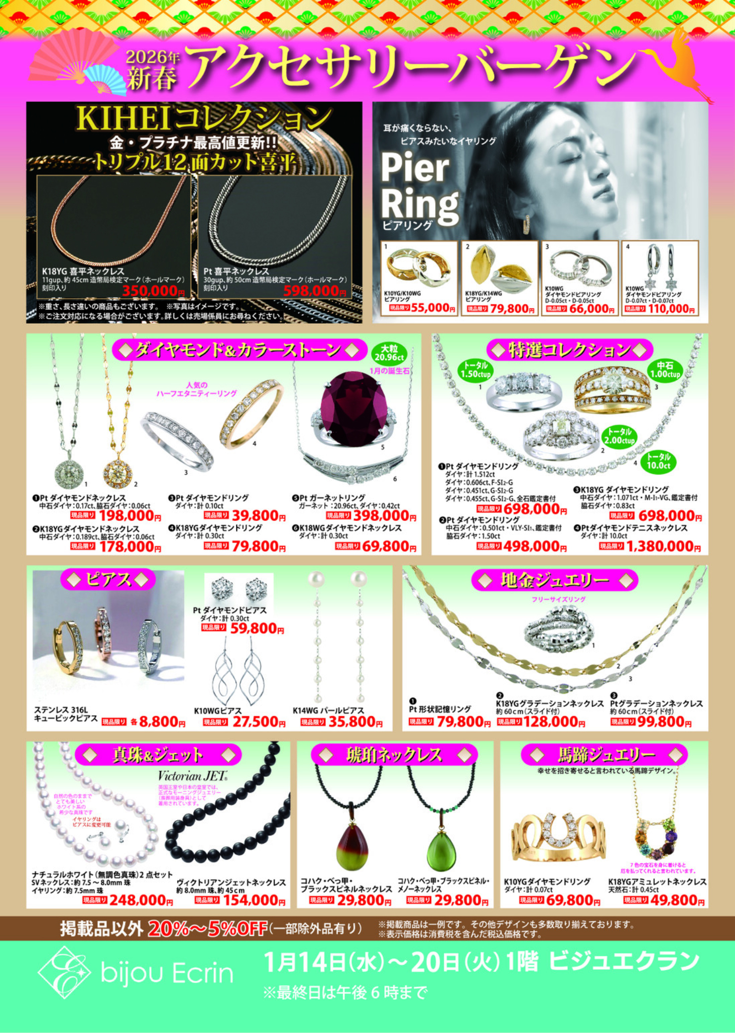 この度ビジュエクランでは新春アクセサリーバーゲンを開催いたします。