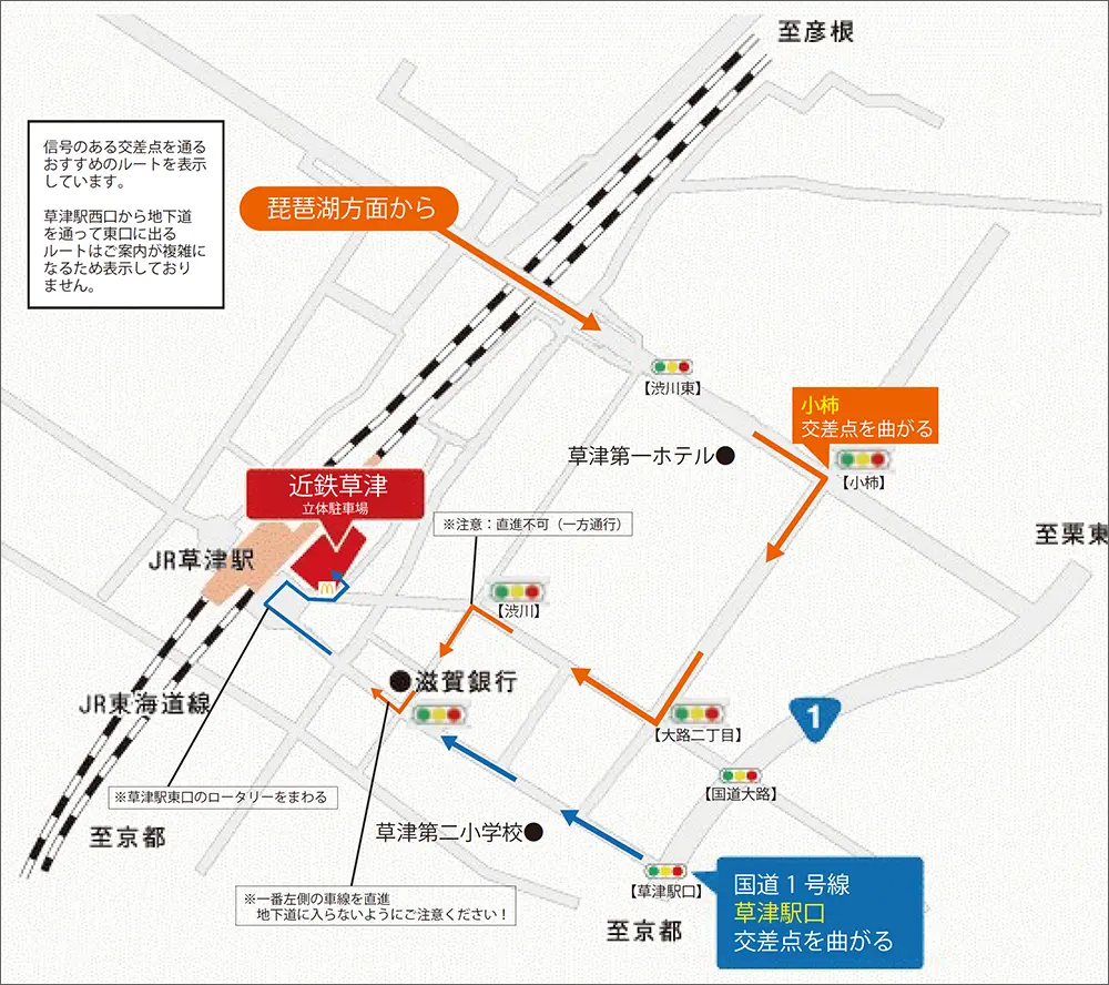 (5:00~10:00および21:00~22:15はJR草津駅側のシースルーエレベーターでのみ店外と出入りすることが可能です)