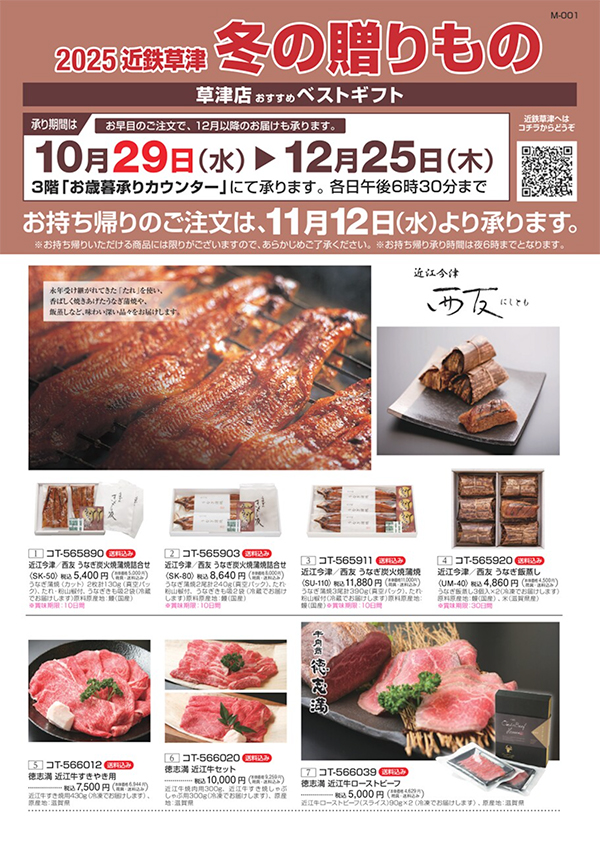 草津店ではお歳暮オリジナルカタログをご用意しています