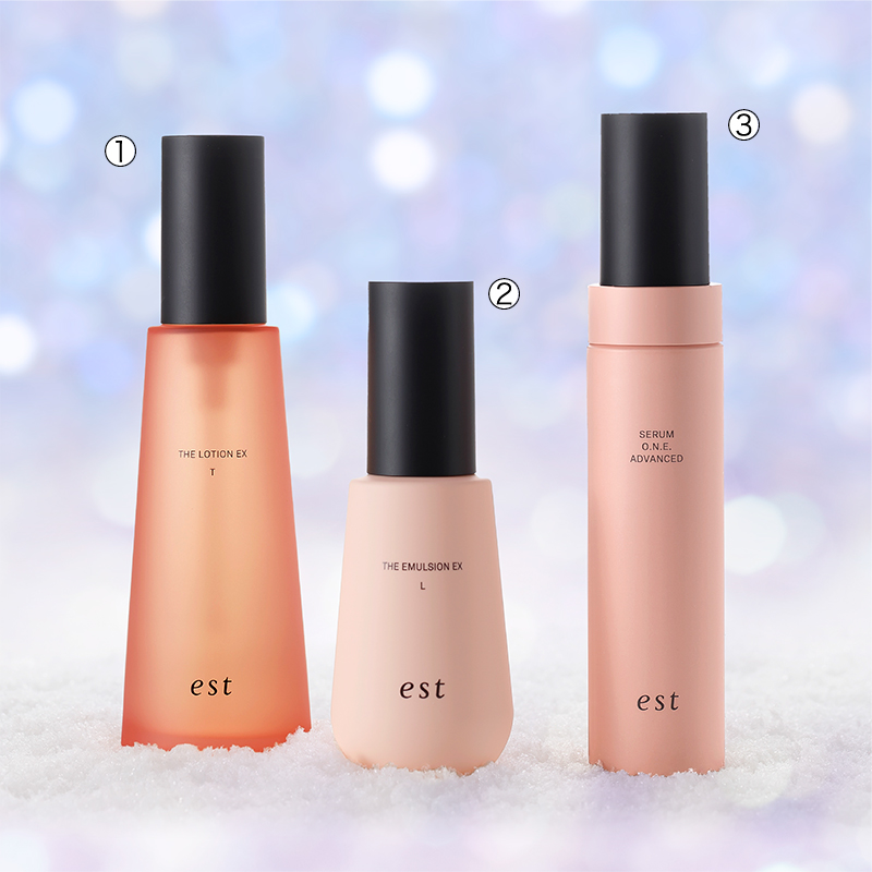 お手入れのファーストステップには、シワを改善し、シミを予防*²する炭酸*³泡の美容液「エスト セラム ワン アドバンスド」を、続いてローション、エマルジョンを使う、うる肌を実感できるスキンケア、始めてみませんか。