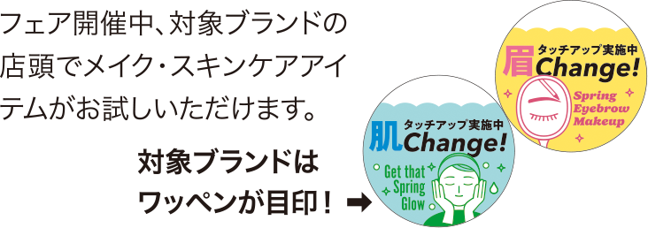 売場スタッフによる眉メイクアドバイスや、おすすめ保湿&UVケア商品の体感サービスなどタッチアップイベントを開催!