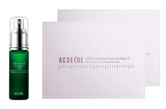 アクセーヌの美容液製品をお買いあげの方に「ホワイト エマルジョン ディープ モイスチュア C マスク(2枚)」をプレゼント。