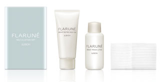 美白乳液「フラルネ ブライトリファイン ミルク f M/EM〈美白乳液〉(110g/200g)」を含むフラルネ製品を5,500円以上お買いあげで「乳液(15g)+化粧水(15mL)+コットン(10枚)」をプレゼント。