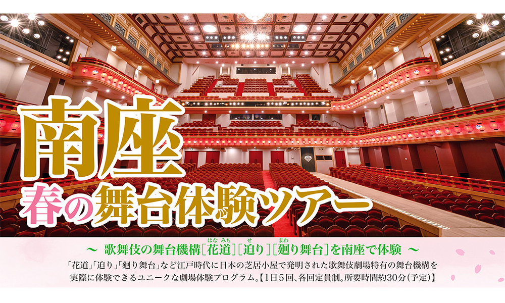 舞台、花道、迫り(せり)、廻り舞台など歌舞伎劇場特有の舞台機能を体験できる「舞台体験ツアー」