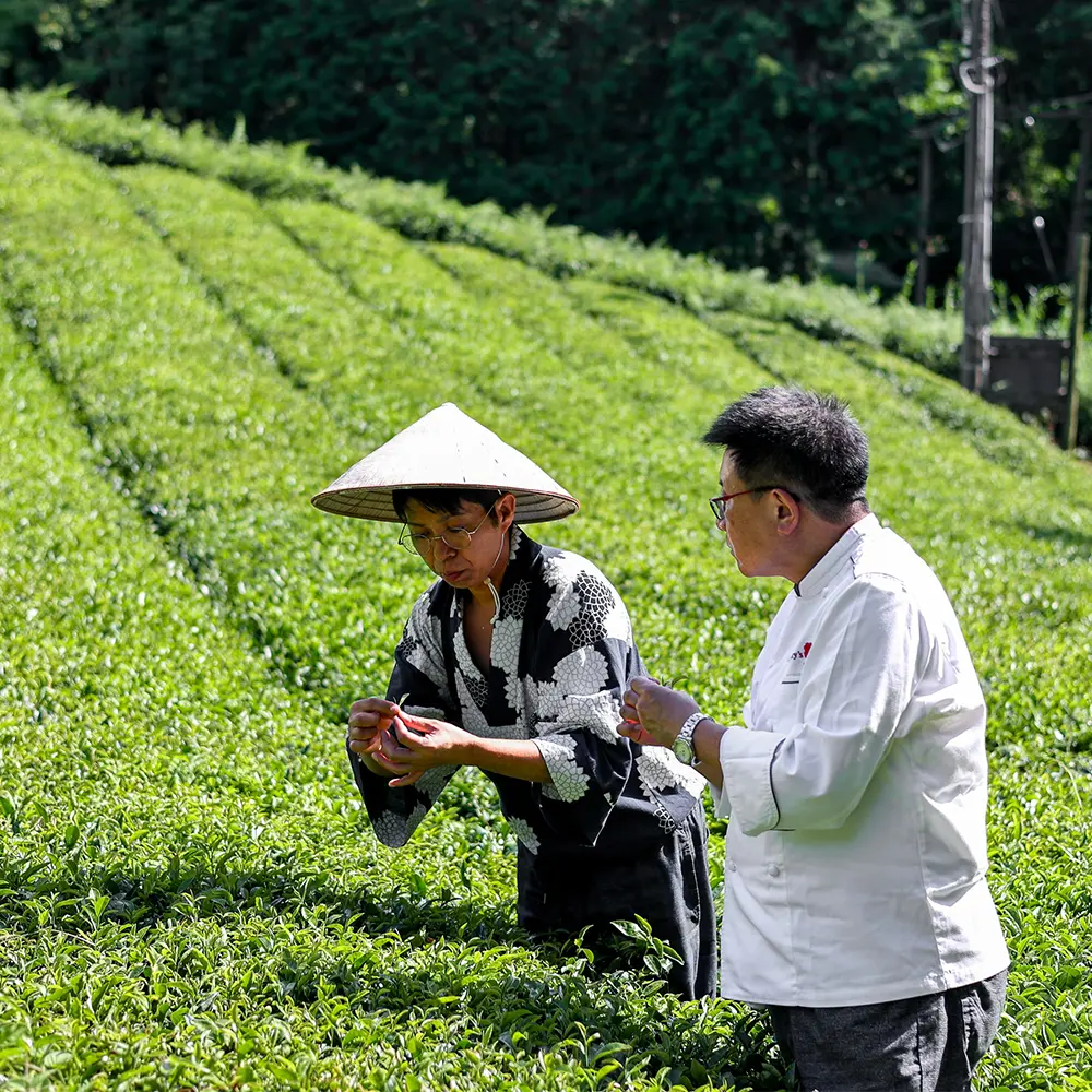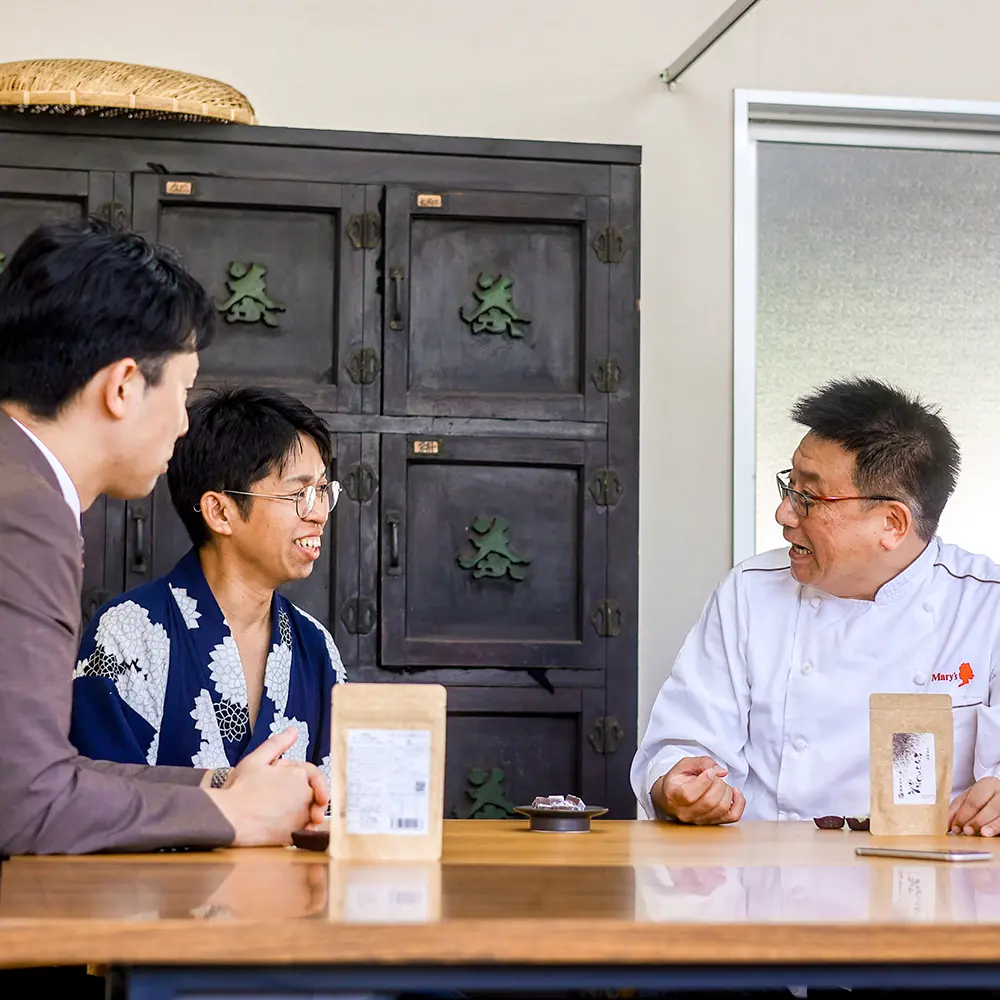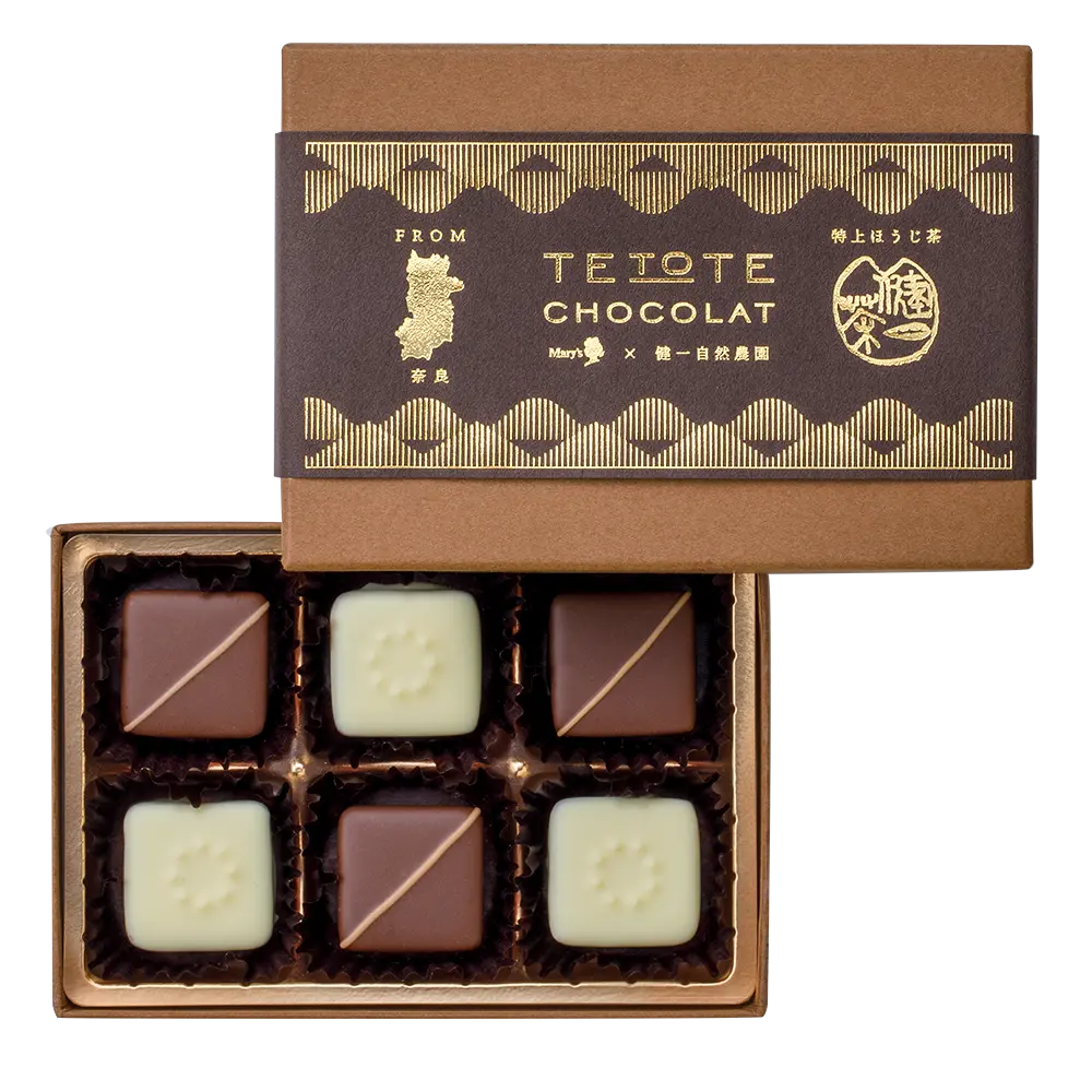 日本各地の素材を使って地域限定のショコラを創る、メリーチョコレートのブランド「てとてショコラ」。農薬・肥料不使用のお茶作りを続ける「健一自然農園」。このモノづくりに強いこだわりを持つ2つの作り手のきずなを近鉄百貨店が取りもつことで、香り、コクが深いのにスッキリした飲み口の「特上ほうじ茶粉末」の持ち味を引き立てながら、カカオ感も十分に活かされたショコラが完成しました。