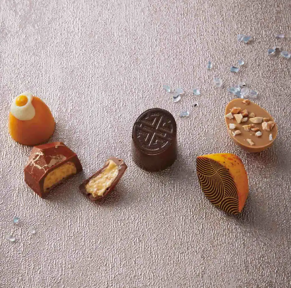 レモンメレンゲ、アプリコット&クランベリー、マンゴー、ブロンズ、ロイヤルの5種類のボンボンは、すべてがデリケート!驚くほど手が込んでいます。