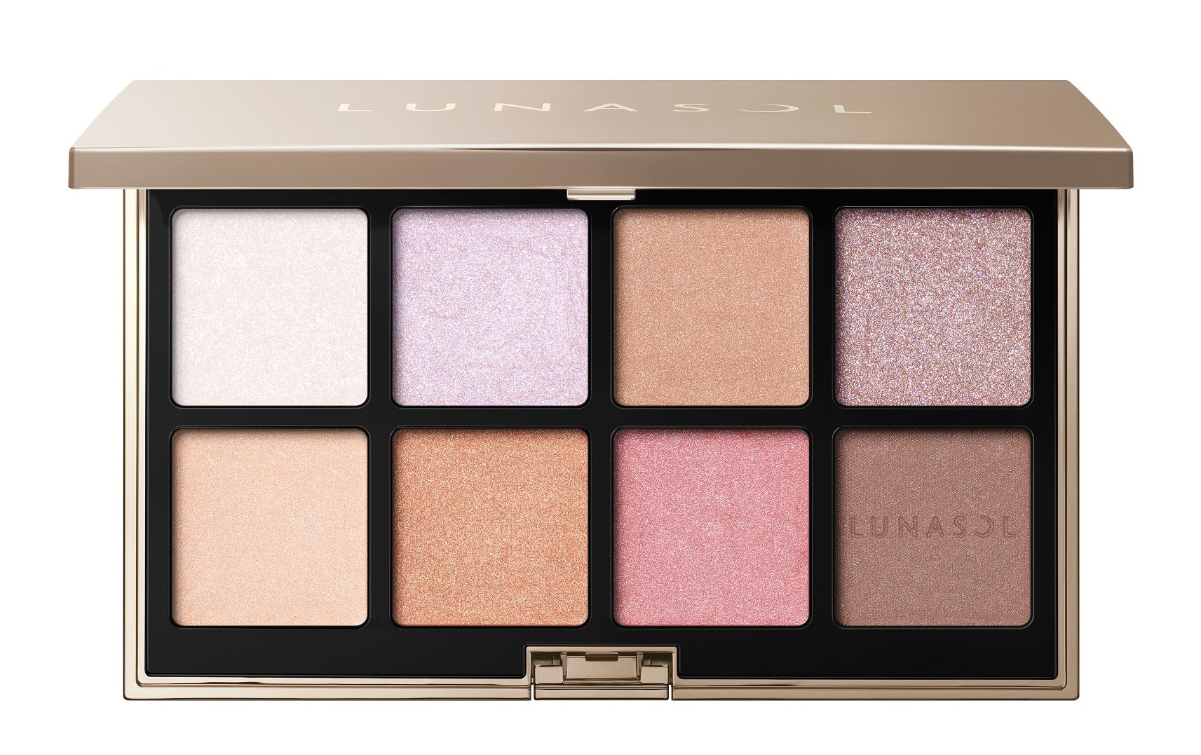 ベージュが咲き誇るようなウォームトーンに、まばゆい輝きを散りばめたパレットアイシャドウ。