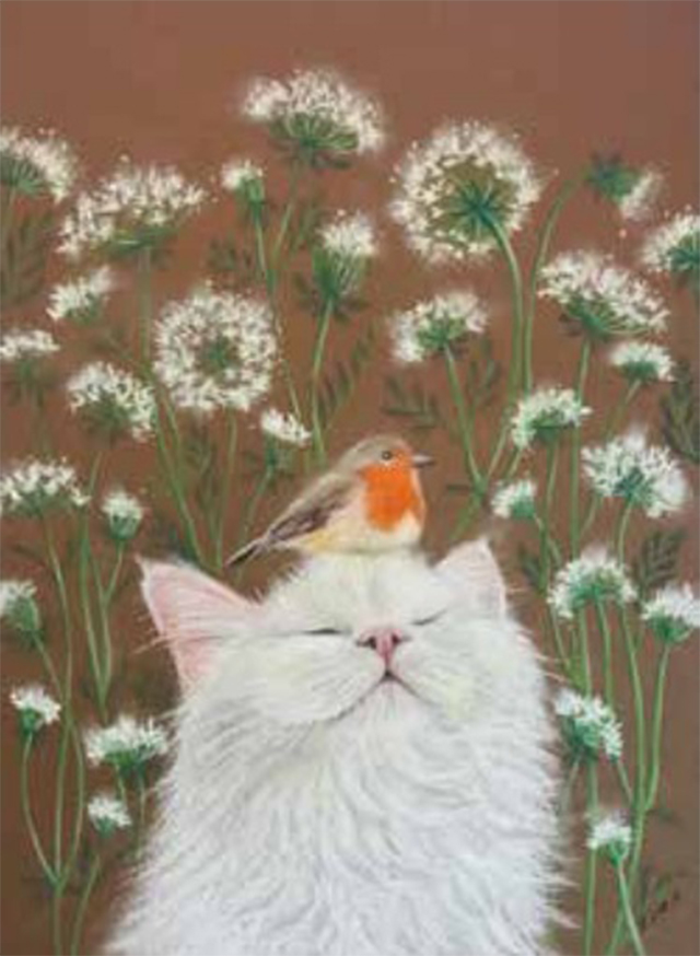 パステルと色えんぴつで、明るい色調と心暖まるふんわりと優しい画風で、猫や動物をメインにした作品を展覧いたします。