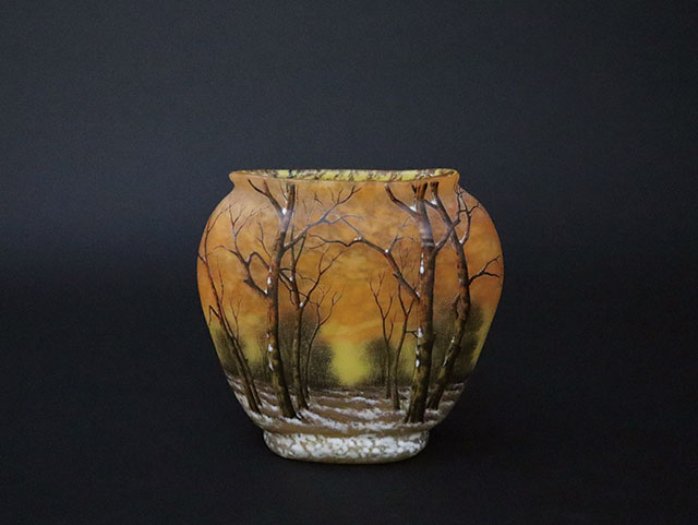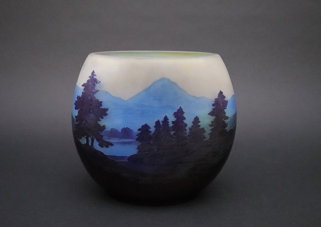 ガレ「湖畔風景図花器」