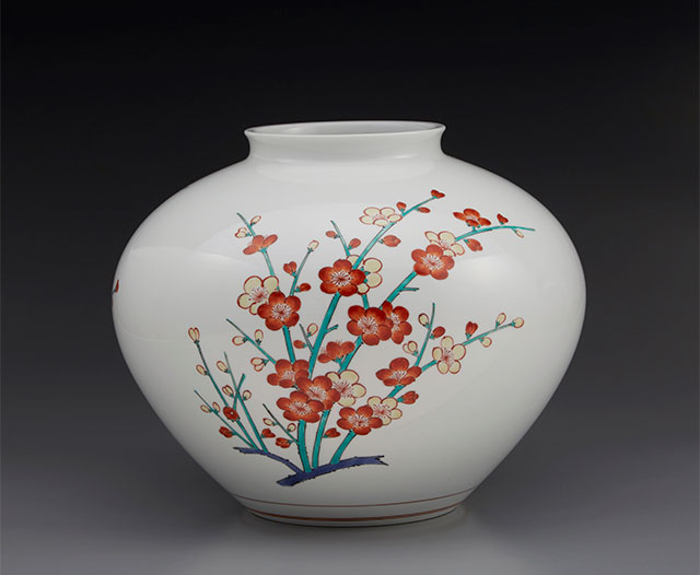 十四代酒井田柿右衛門「濁手梅花文花瓶」