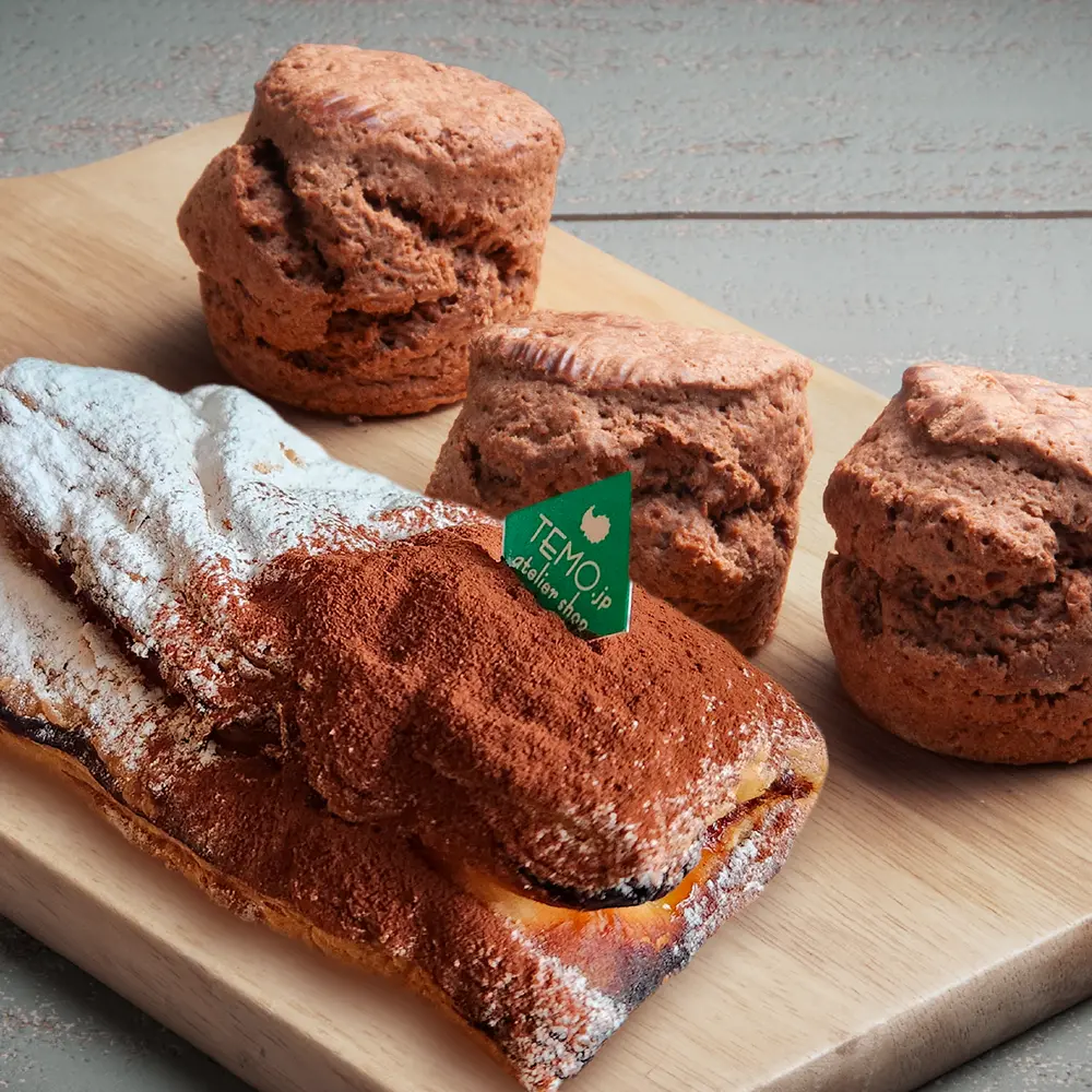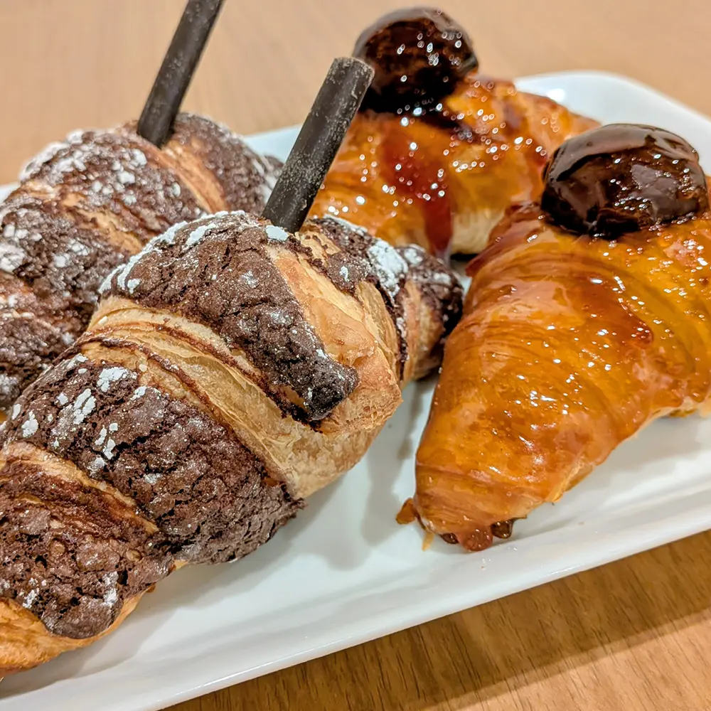 グラスフェッドバター使用クロワッサンにガトーショコラやマロンをデコレーション。