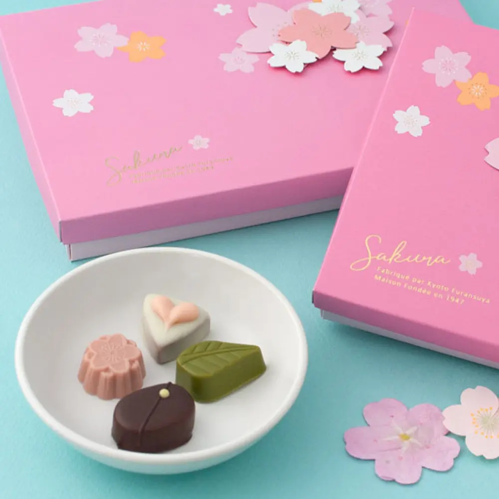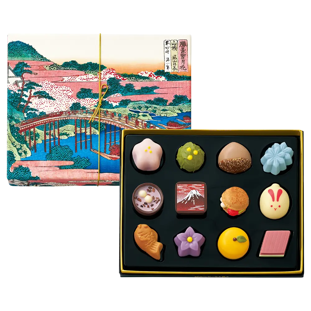 厳選した日本画のパッケージへ和菓子の様なショコラを詰合せ。