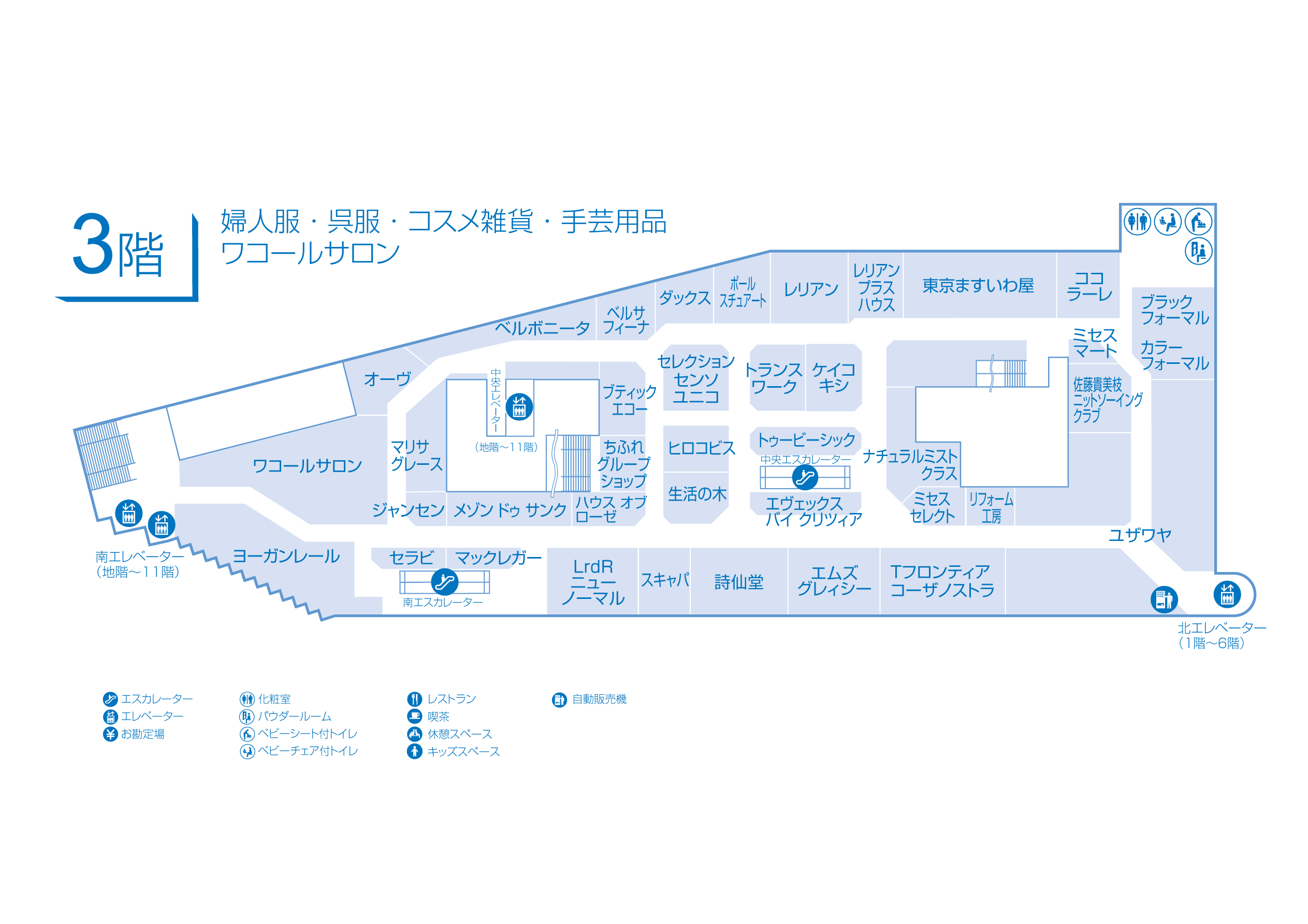 トップ > 店舗情報 > 四日市店トップ > フロアガイド > 3階 婦人服・呉服・コスメ雑貨・手芸用品