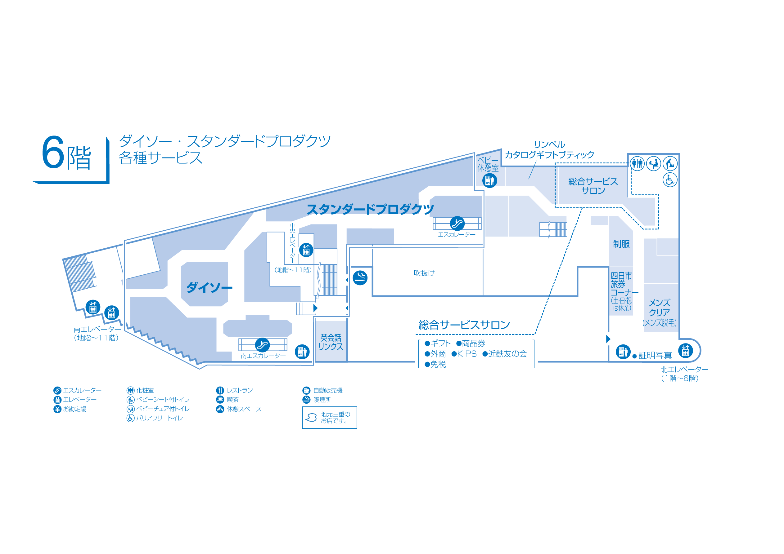 トップ > 店舗情報 > 四日市店トップ > フロアガイド > 6階 ダイソー・各種サービス(近鉄友の会・商品券・ギフトサロンほか)