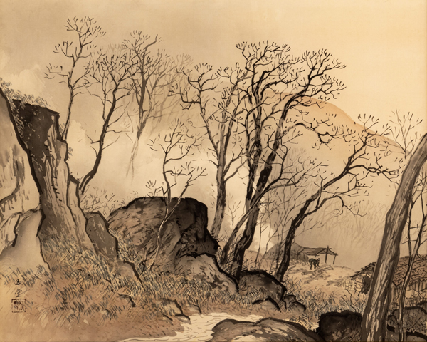 川合玉堂「炭焼く夕山」48.7×60.2㎝(鑑定付)