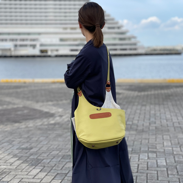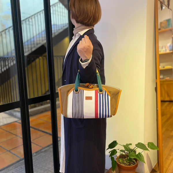イタリアレザー × フランスコットン ミニショルダー牛革・ナイロン・綿、25×7.5×17㎝30,800円