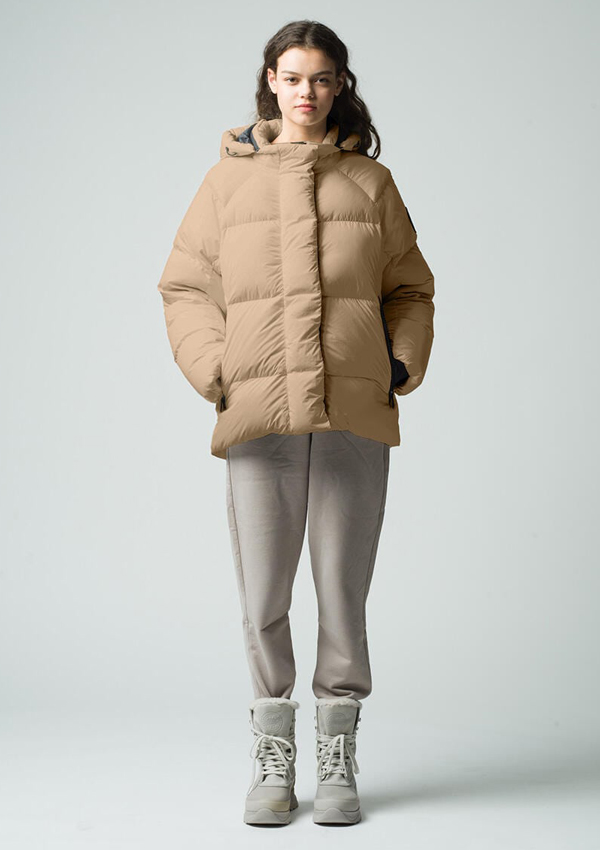 表地に非常にソフトなリサイクルエンデュラリュクス生地を使用し、耐久性に優れた〈ブライデン パッファー〉は、寒い冬に活躍する一着です。