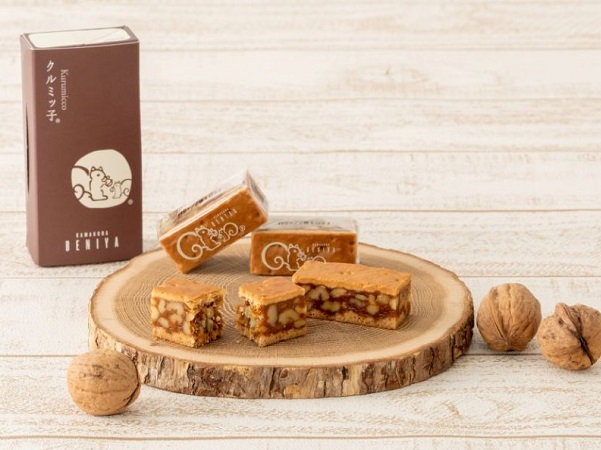 ぎっしり詰まった歯ごたえのよいクルミと、甘さとほろ苦さの絡み合った自家製キャラメルをバター生地ではさんだ贅沢な焼き菓子の「クルミッ子」、鶴岡八幡宮の象徴だった大銀杏の一葉を形にしたサブレ「鎌倉だより」を数量限定でご用意いたします。