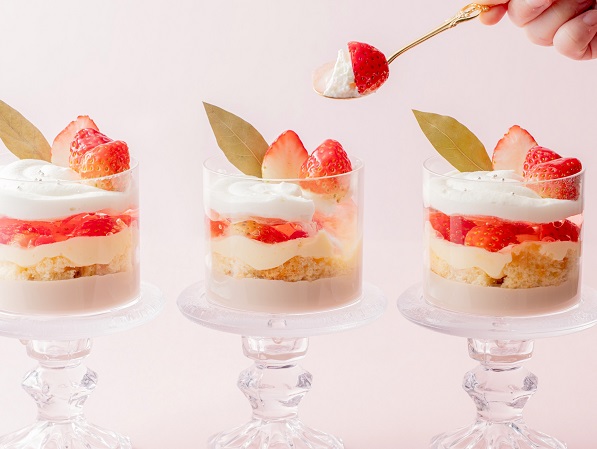 苺とスポンジに、コクのある黒糖味のパンナコッタ、さわやかな苺ゼリーを合わせた”おいしい”が詰まったパフェのようなカップスイーツです。