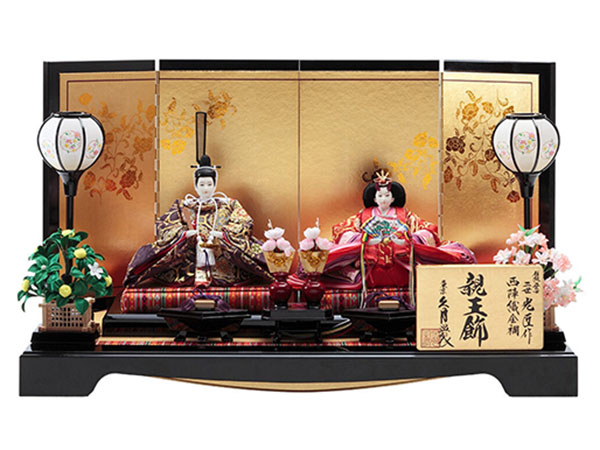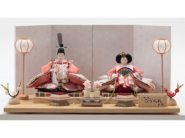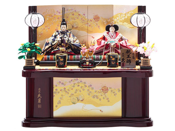 麻の葉文様を描いた美しい屏風に、桃色の段織衣裳をまとった愛らしいお人形をのせた親王平飾りです。麻の葉文様は、麻の丈夫さや成長の早さにあやかり、赤子の産着として定番とされた大変縁起の良いモチーフです。芥子親王飾間口55×奥行30×高さ27㎝126,500円 豪華な西陣織金襴をまとった煌びやかなお人形が、趣のある飾り台に見事に映える華やかさ溢れる親王収納飾りです。三五親王飾 収納セット間口65×奥行45×高さ58㎝167,200円 伝統工芸士・二世光匠が、細部までこだわって丁寧に手作業で仕立てました。繁栄・長寿を意味する縁起の良い唐草を描いた屏風に、優しく微笑むお人形が見事に調和した人気のお雛さまです。京十一番親王飾光匠作 間口65×奥行35×高さ38㎝187,000円 銘木である紫檀を飾り台に使用した、久月オリジナルの銘木シリーズの親王収納飾りです。衣裳の着せ付けは、雛人形師・光園が細部にわたり丁寧に手作業で仕立てました。クラシカルな伝統美とモダンなテイストが調和する、人気のお飾りです。銘木収納飾紫檀 間口50×奥行30×高さ43㎝209,000円