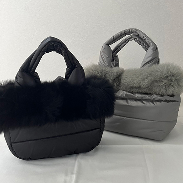 フォックスファー付きトートバッグブラック:30×10×22㎝