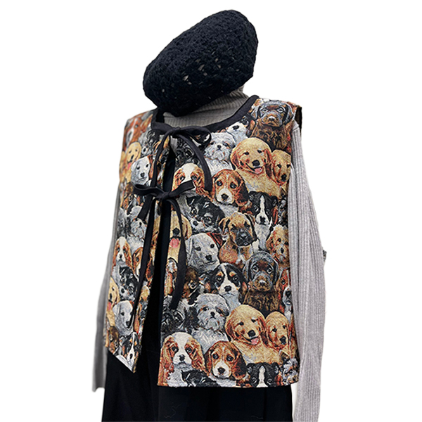 ゴブラン織のベストです。前リボンで可愛く羽織ってみませんか。