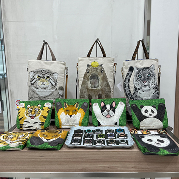 可愛い動物たちの柄のバックやポーチは、中綿入りでフワフワの仕上がりです。