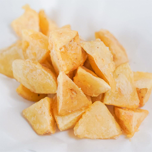 知床産100%のじゃがいもを揚げました。甘くてしっとり食感のじゃがいもです。