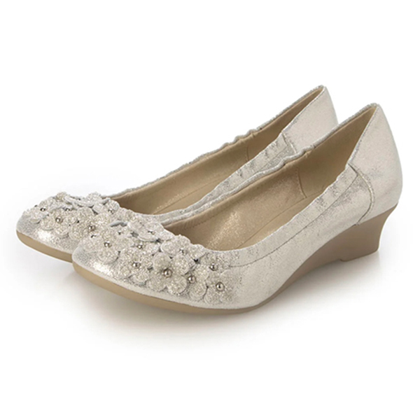 小花モチーフウェッジヒールパンプス