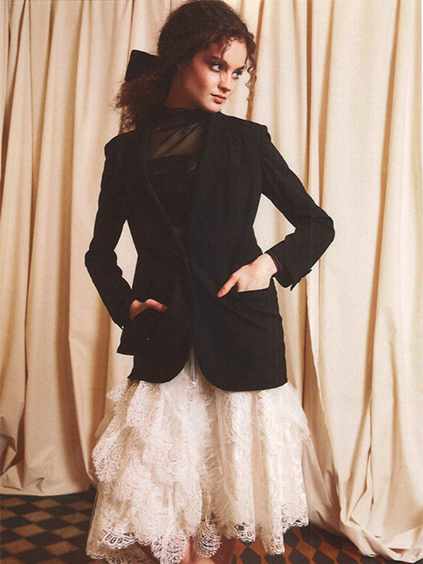 立体的で美しいドラマティックなフェイドアウトプリーツジャケット。女らしさが香る華やかなショールカラーを大胆に彩る 意匠を凝らしたプリーツテクニックでシンプルなシルエットでもクチュール感ただよう1着に。光と影が織り成す繊細な陰影と立体感を湛えたプリーツの表情が素敵です。