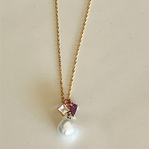 南洋ケシパールネックレスアメジスト・ピンクトリマリン・ローズクオーツ・南洋ケシパール